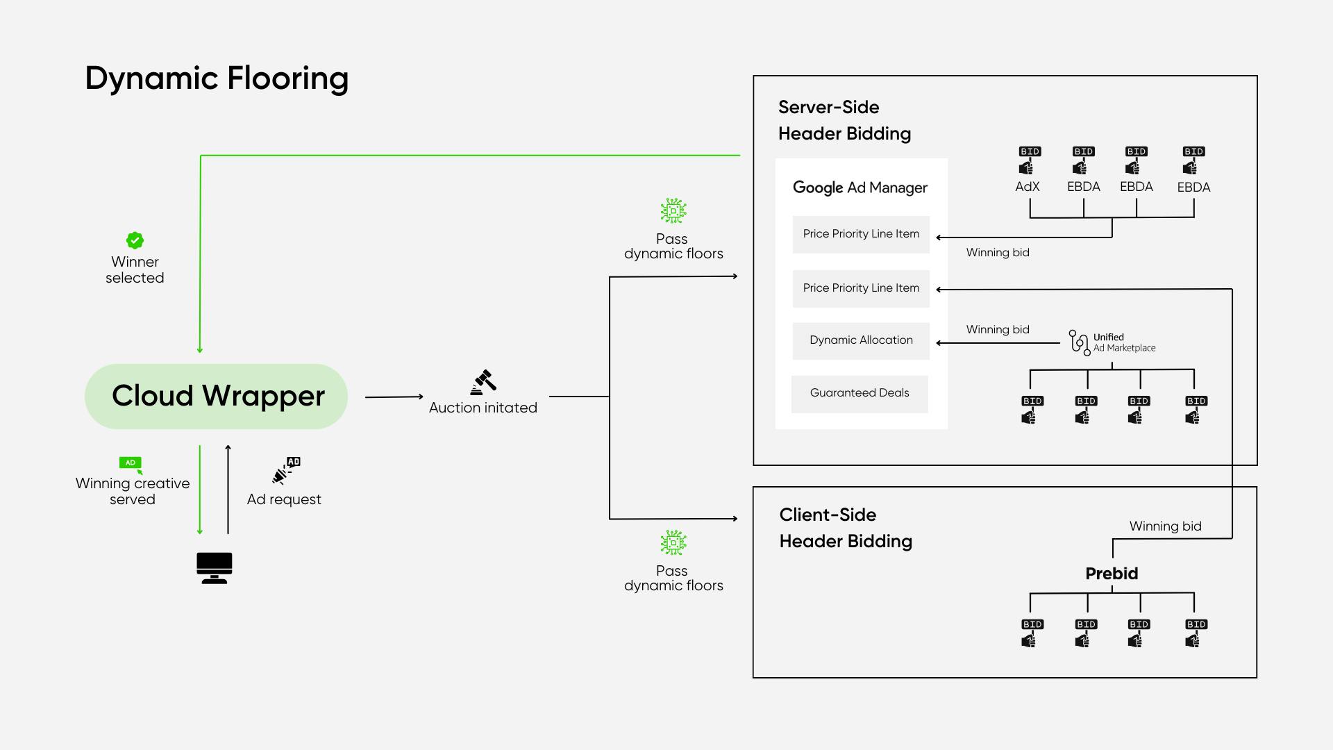 However, it's crucial to recognize that innovative solutions exist to address these concerns. Dynamic flooring is designed to mitigate the challenges associated with traditional price flooring models. As mentioned before, dynamic price flooring leverages advanced technology and data intelligence to estimate the fair market value of ad impressions in real time.