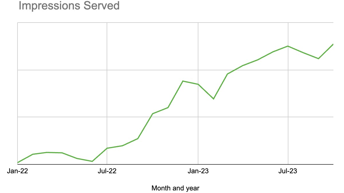 - Impressions served grew by 258.63% on display and 93.25% on video in 2023 compared to 2022
