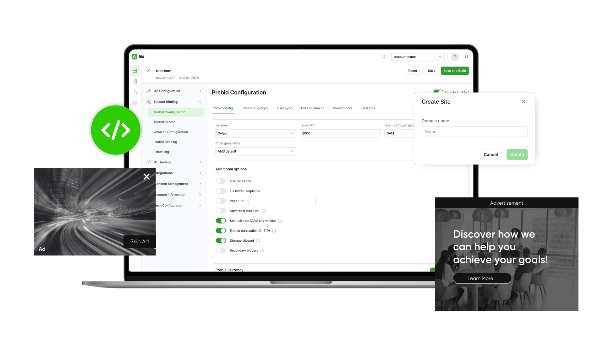 A lightweight Prebid wrapper and a no-code UI for centralized ad management, streamlined operations, and seamless vendor integration.
